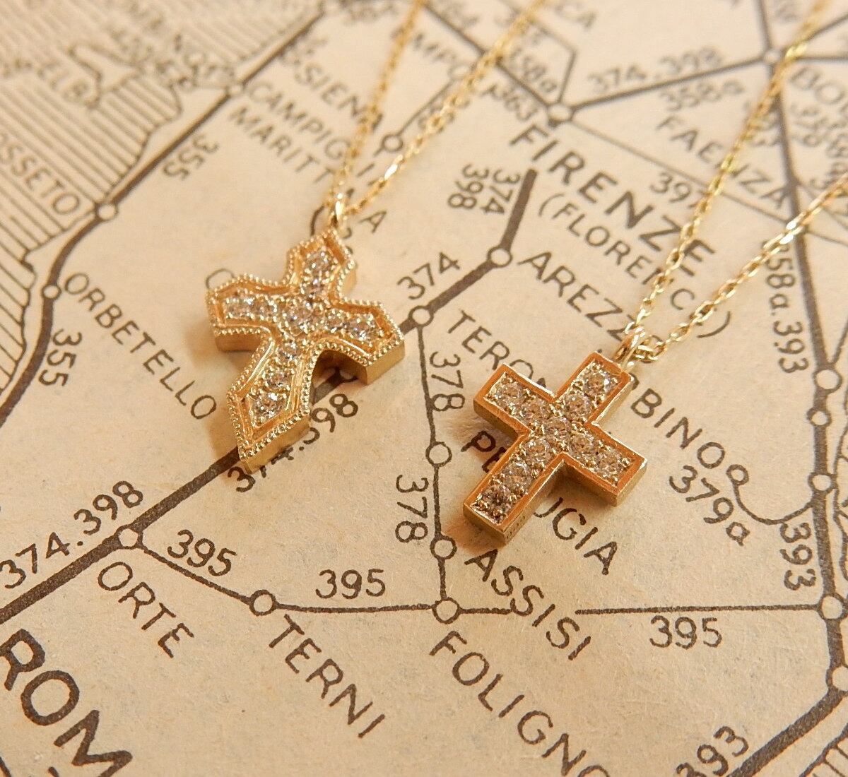 ダイヤモンドは3つのサイズを使い、クロスの形に合わせて配置。