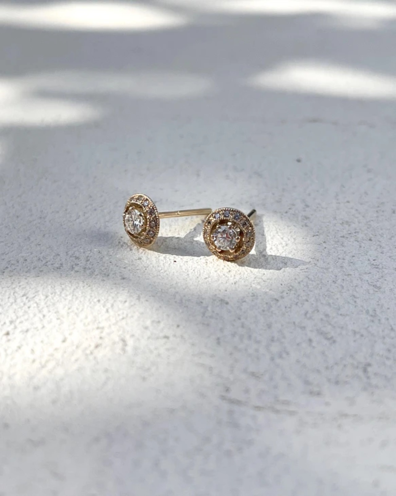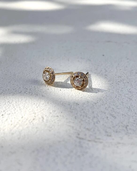 小さいけれど、ダイヤモンドを贅沢に使ったピアスです。